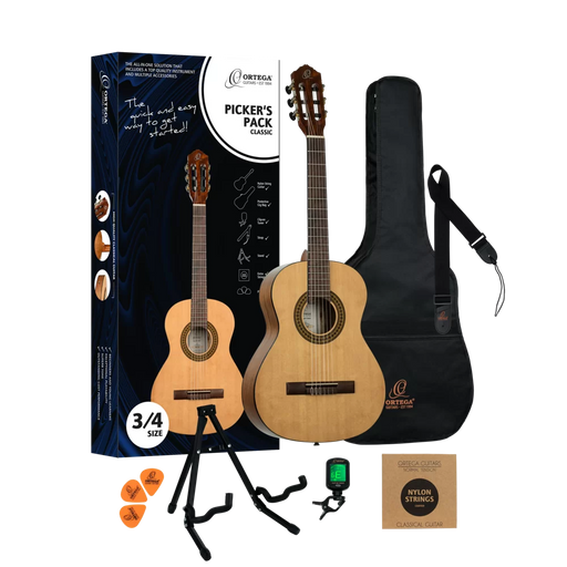 View full detailsOrtega Starter Pickers 3/4 Size Starter Outfit - Bag, Tuner, Stand, Pick & Strap Included