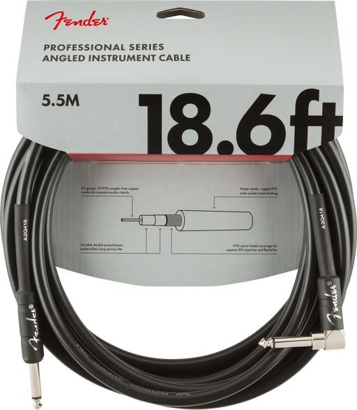 Fender Professional Series Instrument Cable, Straight/Angle - 18.6ft / 5.5m - Black