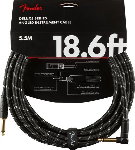 Fender Deluxe Series Instrument Cable, Straight/Angle 18.6ft / 5.5m - Black Tweed