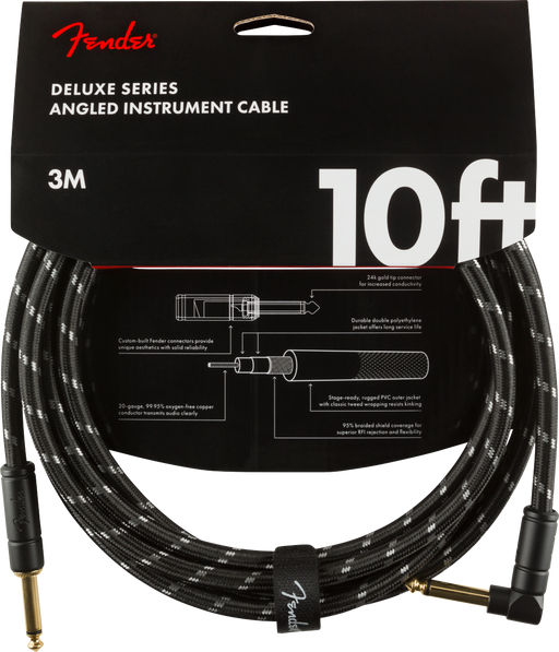 Fender Deluxe Series Instrument Cable, Straight/Angle 10ft/ 3m - Black Tweed