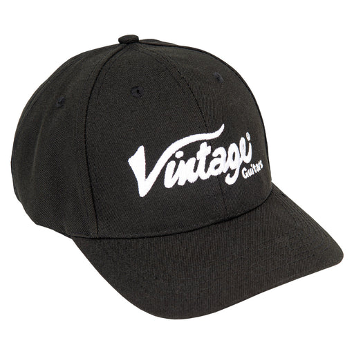 Official Vintage Eco Baseball Cap. • White embroidered Vintage® Guitars logo across the front.• Classic black six-panel design with breathable eyel...